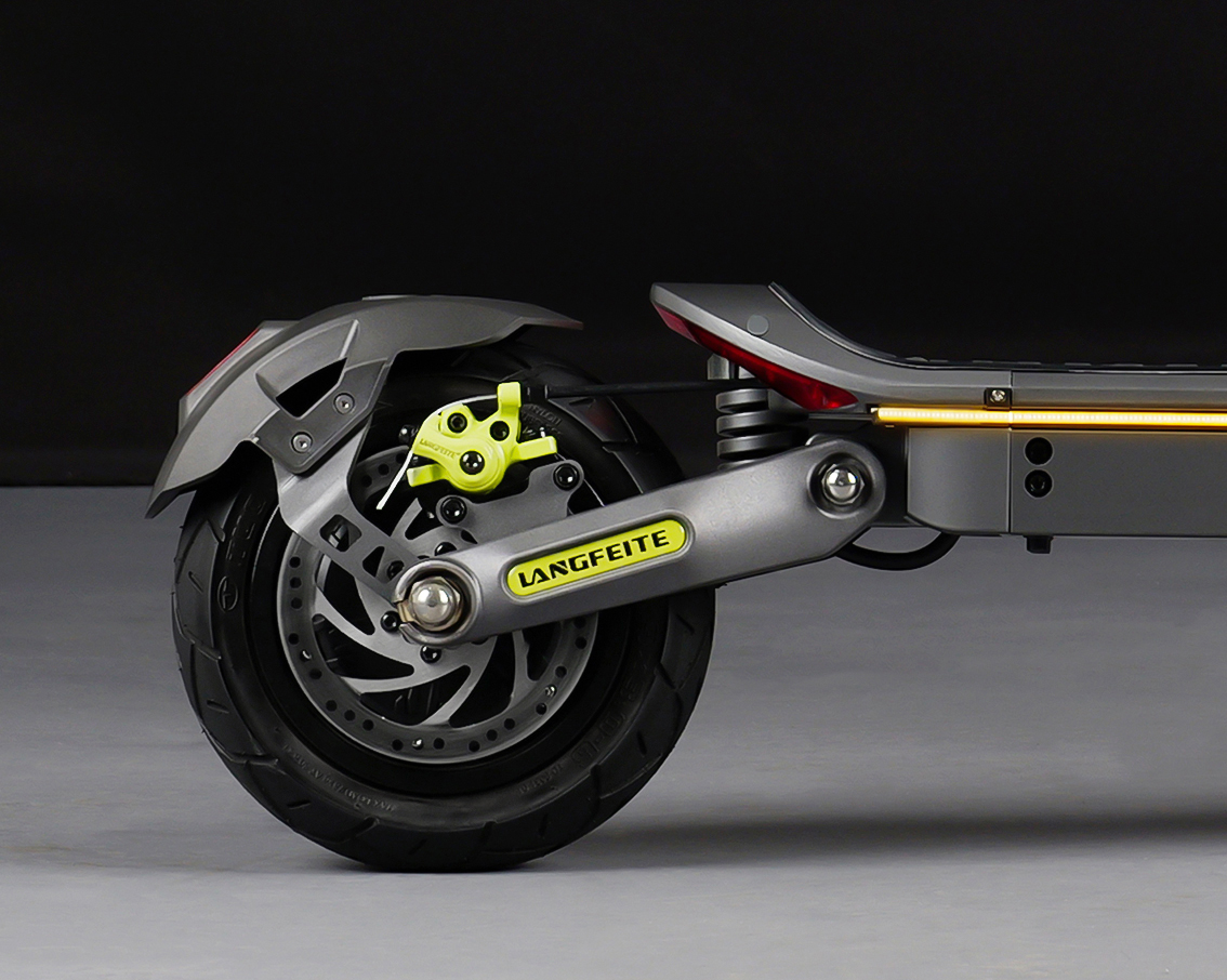 As an expert in urban commuting, Langfeite Coupé insists on using advanced mechanical brakes. Double insurance for front and rear wheels, providing you with rapid braking response under any circumstances. The elastic silicone pad of Langfeite Coupé can not only reduce bumps but also increase friction and prevent slipping. All are designed for your safe ride.