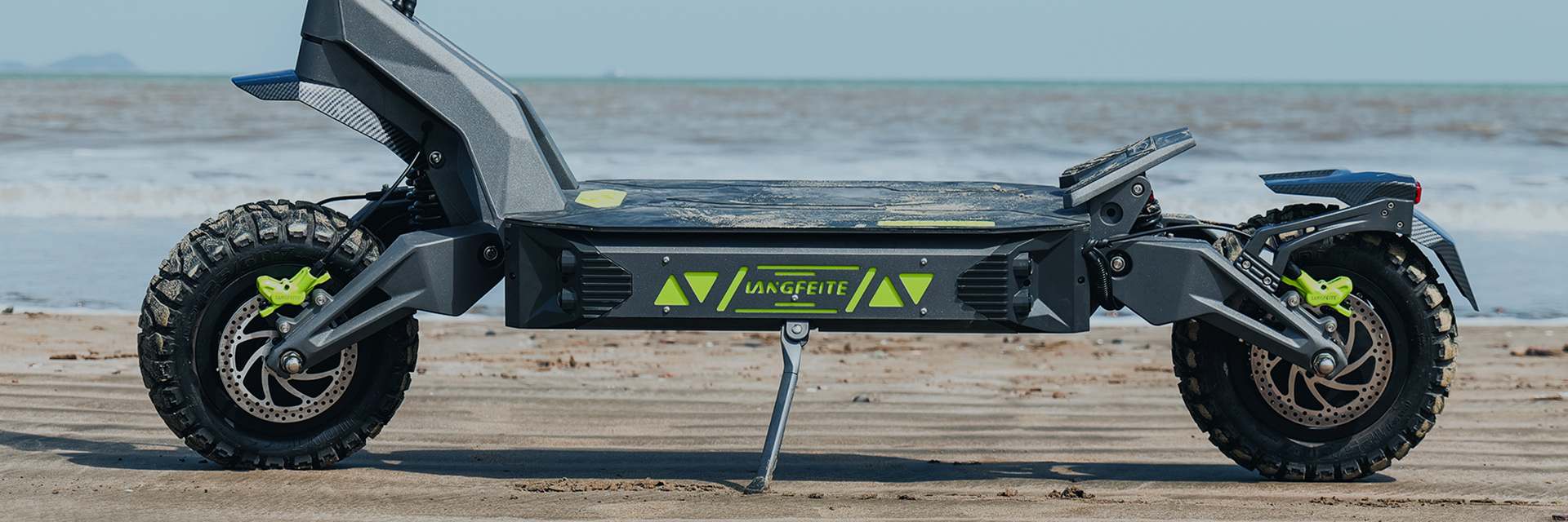 LANGFEITE H1 is an amazing off-road electric scooter. With 110km range, rated power 2000W*2 dual motors, and 105km/h top speed, it conquers all terrains, 50° climbing angle expands possibilities. Redefining off-road exploration.
